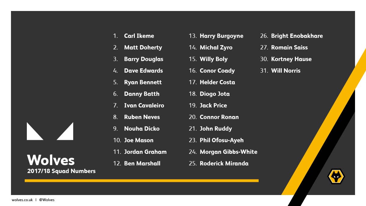 Wolves On Twitter The Squad Numbers For The 2017 18 Season Have Been Confirmed Wwfc Https T Co I8wp4asym5